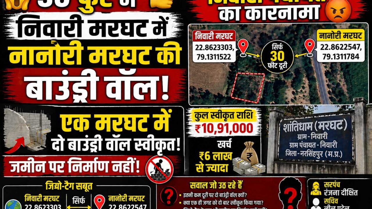 दो मरघट, 10 लाख का काम… जमीन पर नहीं बाउंड्री वॉल! निवारी पंचायत में बड़ा खुलासा: रिकॉर्ड में “Ongoing”, मौके...