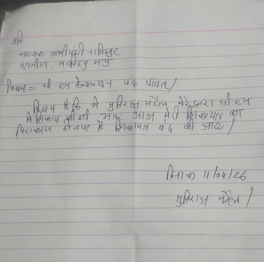 ग्रामीण क्षेत्र के सहायक अभियंता संतोष चौधरी से इस मामले में संपर्क किया गया। उन्होंने बताया कि विभाग द्वारा शिकायतकर्ता से बात की गई थी।