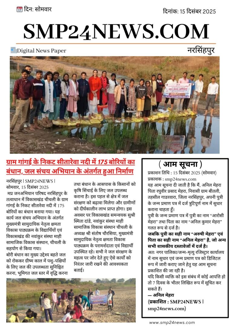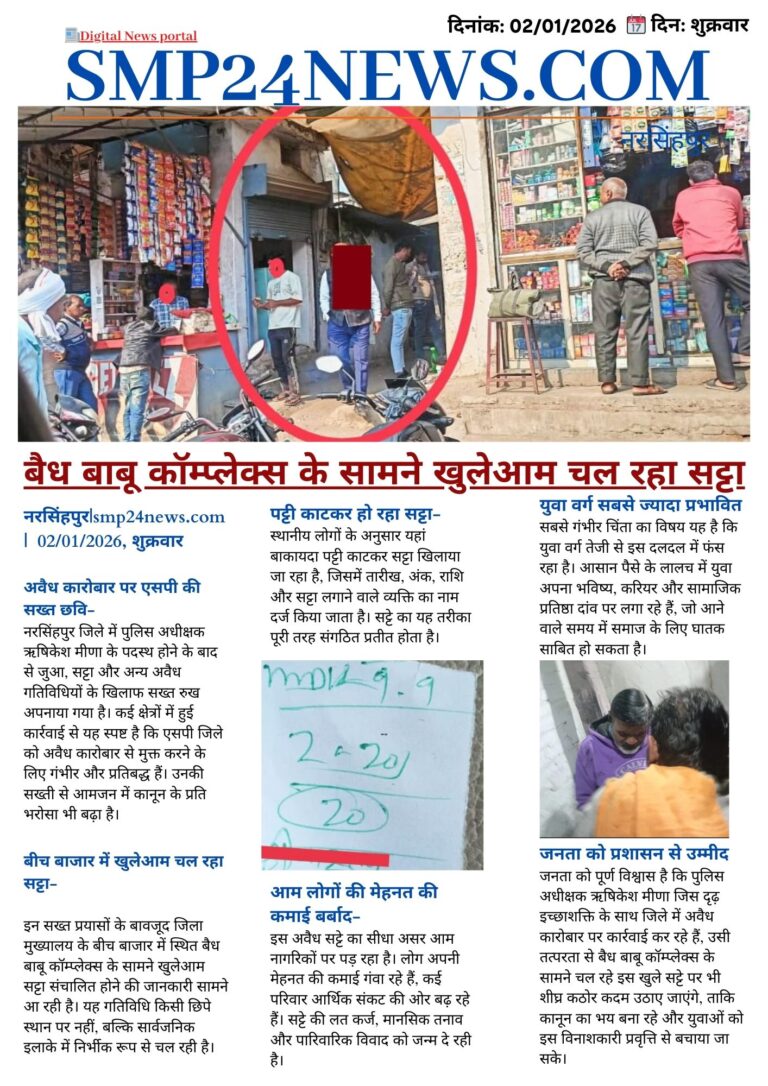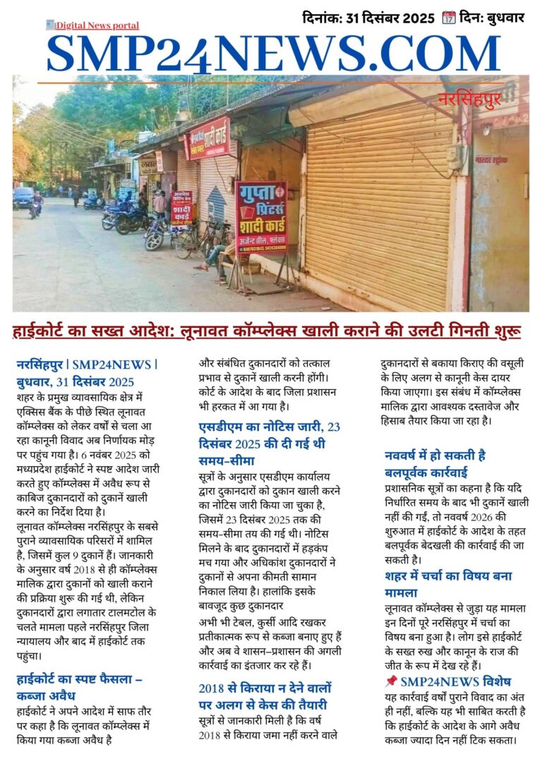 SMP24NEWS.COM 📰Digital News portal नरसिंहपुर 📆 दिन: बुधवार दिनांक: 31 दिसंबर 2025 नरसिंहपुर | SMP24NEWS | बुधवार, 131 दिसंबर 2025...