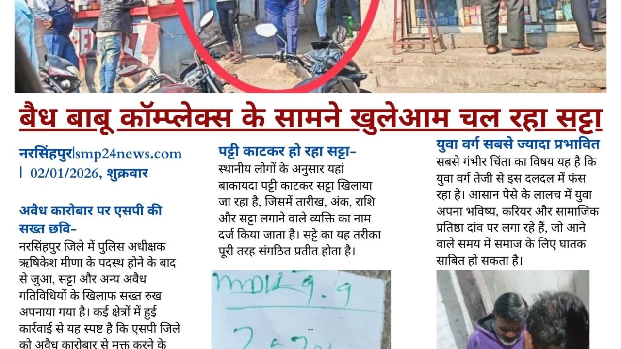 नरसिंहपुर|smp24news.com| 02/01/2026, शुक्रवार अवैध कारोबार पर एसपी की सख्त छवि- नरसिंहपुर जिले में पुलिस अधीक्षक ऋषिकेश मीणा के पदस्थ होने...